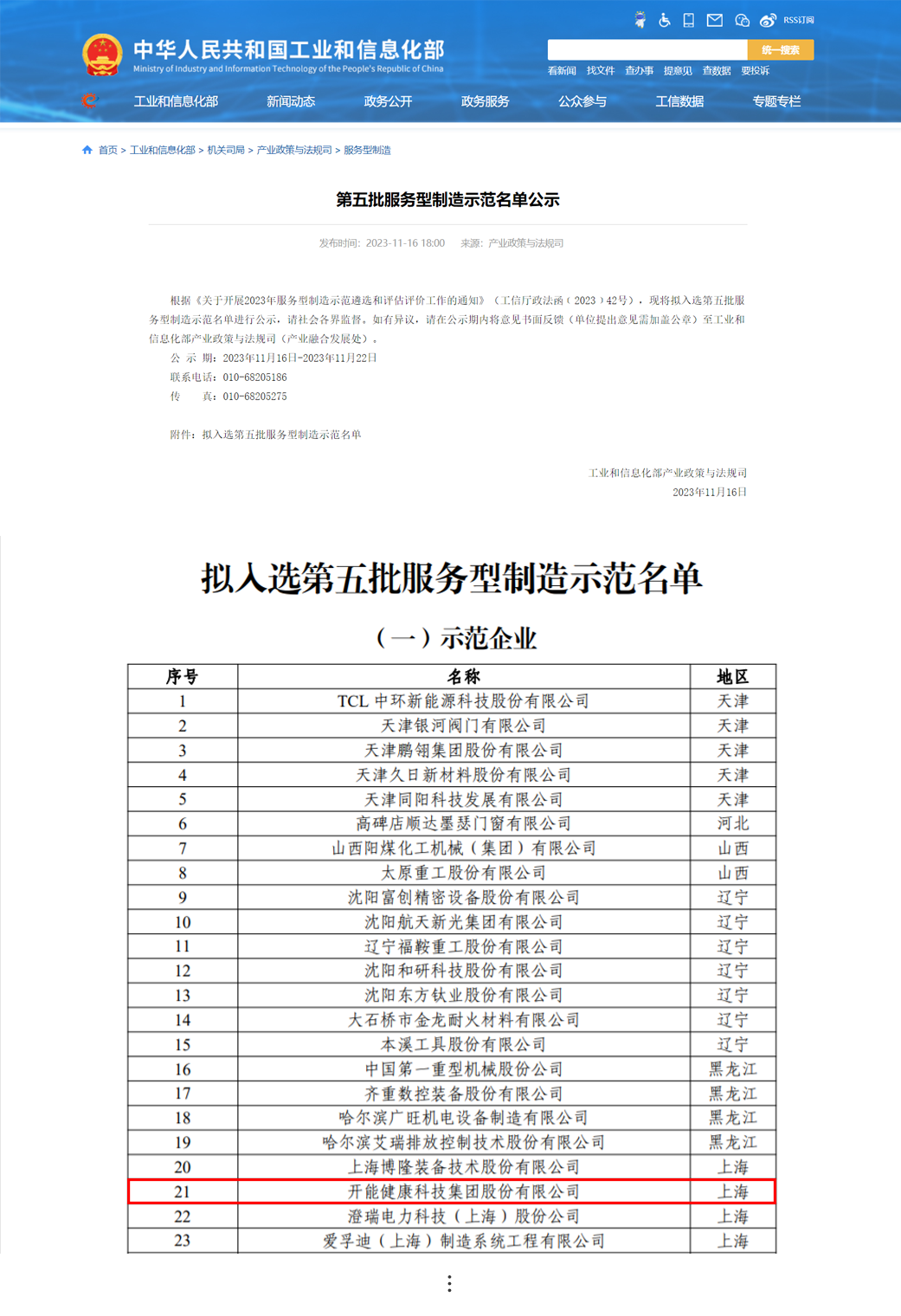 開能健康入選工信部服務型制造示范企業