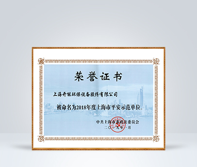 2018年榮獲上海市平安示范單位榮譽證書